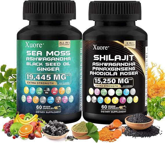 Xuore’s All-in-One Supplement combines PURE HIMALAYAN SHILAJIT, Sea Moss, Black Seed Oil, and more, offering 75%+ FULVIC ACID & 85+ TRACE MINERALS for optimal health benefits. Ideal for both MEN and WOMEN seeking a NATURAL & ORGANIC boost.